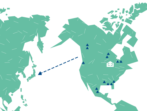 ウエストフレイザーがカナダ西部で操業する2カ所のJAS認定工場は、年間180万㎥の生産能力があります。港から日本まで約14日間という短期間で配送可能。コンスタントな輸送によって、急な需要にもお応えしています。