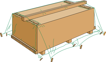 長期にわたって保管する場合は、反りを防ぐためにダンネージの位置をそろえ、必要に応じ追加して積み重ねてください。